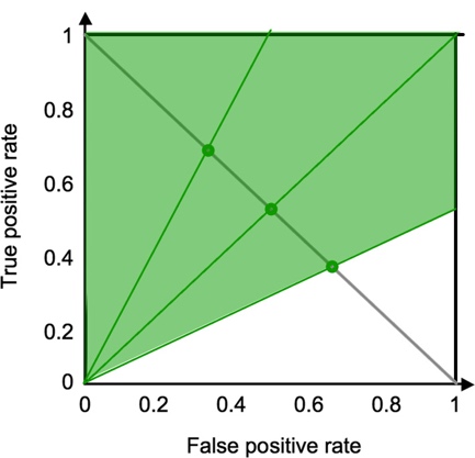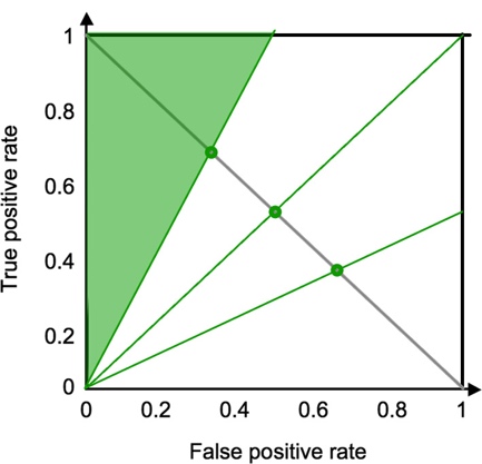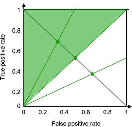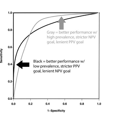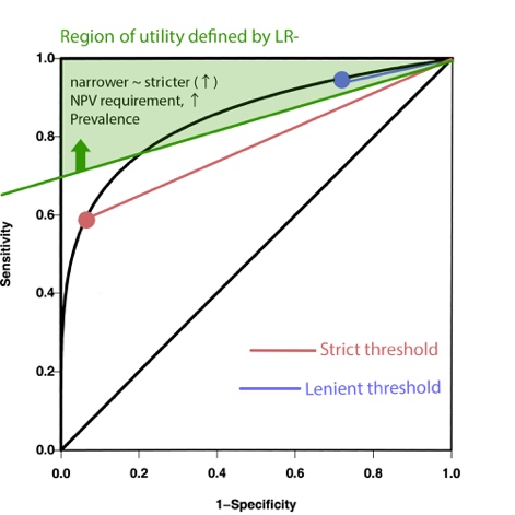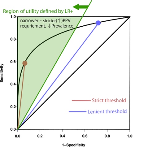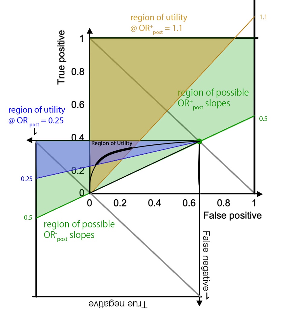 a diagnostic test to be useful) resides on the top left corner triangle of the