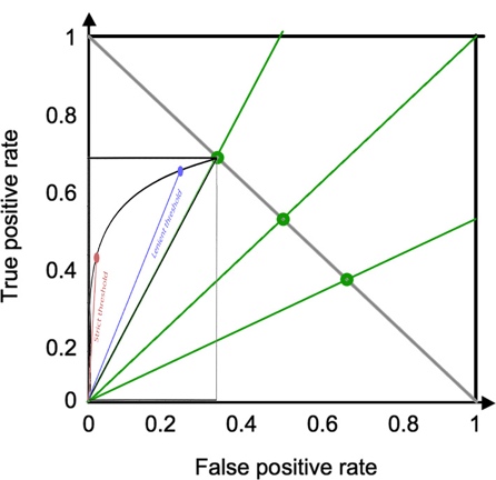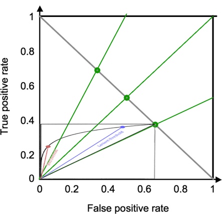 the intersection between the line from Step 2 and the fitted ROC curve. Is